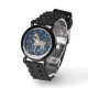 On this cute watch, a black and white striped zebra steps through a sky full of silver white stars. The image is placed on a dark blue background. The silver numbers make the watch easy to read. This design looks great with several of the wrist band colours, too...check them out!