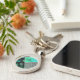 Glittery Teal Tropical Leopard Print Custom Key Ring