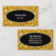 Business card template with a modern design featuring stars scattered over a stylised "sequin look" background in shades of yellow gold with a black oval edged with white and white text. Can be used as a background for your own text, images and ideas. The text can easily be changed using the template provided or click the 'Customise It' button to make further alterations. Please note this is a printed digital art image, it does not shine or contain real glitter or sequins.