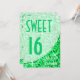 Invitation with a modern design featuring stars scattered over a stylised "sequin look" curved shape in shades of green with 'Sweet 16' 'you're invited' written in green and white. Can be used as a background for your own text, images and ideas. The text can easily be changed using the template provided or click the 'Customise It' button to make further alterations. Please note this is a printed digital art image, it does not shine or contain real glitter or sequins.