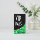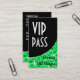 Business card template with a modern design featuring stars scattered over a stylised "sequin look" curved shape in shades of green set against a black background with 'VIP Pass access all areas' written in white and black. Can be used as a background for your own text, images and ideas. The text can easily be changed using the template provided or click the 'Customise It' button to make further alterations. Please note this is a printed digital art image, it does not shine or contain real glitter or sequins.