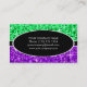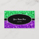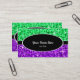 Business card template with a modern design featuring stars scattered over a stylised "sequin look" background in shades of green and purple with a black oval and stripe edged with white and white text. The text can easily be changed using the template provided or click the 'Customise It' button to make further alterations. Please note this is a printed digital art image, it does not shine or contain real glitter or sequins.