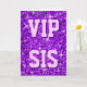 Greetings card with a modern printed design with stars scattered over a stylised "sequin look" pattern background and 'VIP SIS' written in shades of purple and lilac. A customisable design for you to personalise with your own text, images and ideas. Please note this is a printed digital art image. The product does not shine or contain real glitter or sequins.