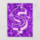 Postcard with a modern design featuring stars scattered over a stylised "sequin look" pattern background and a dollar sign '$'in shades of purple and lilac. Can be used as a background for your own text, images and ideas. Please note this is a printed digital art image, it does not shine or contain real glitter or sequins.