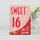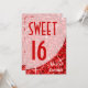 Invitation with a modern design featuring stars scattered over a stylised "sequin look" curved shape in shades of red with 'Sweet 16' 'you're invited' written in red and white. Can be used as a background for your own text, images and ideas. The text can easily be changed using the template provided or click the 'Customise It' button to make further alterations. Please note this is a printed digital art image, it does not shine or contain real glitter or sequins.