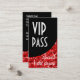 Business card template with a modern design featuring stars scattered over a stylized "sequin look" curved shape in shades of red set against a black background with 'VIP Pass access all areas' written in white. Can be used as a background for your own text, images and ideas. The text can easily be changed using the template provided or click the 'Customize It' button to make further alterations. Please note this is a printed digital art image, it does not shine or contain real glitter or sequins.