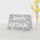 Greetings card with a modern printed design with stars scattered over a stylised "sequin look" pattern background and your text written in shades of silver grey. A customisable design for you to personalise with your own text, images and ideas. Please note this is a printed digital art image. The product does not shine or contain real glitter or sequins.