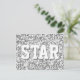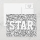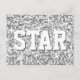 Postcard with a modern design featuring stars scattered over a stylised "sequin look" pattern background and 'STAR' in shades of silver grey. Can be used as a background for your own text, images and ideas. Please note this is a printed digital art image, it does not shine or contain real glitter or sequins.