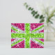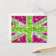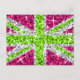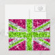 Fly the UK flag with a twst! A fun Union Jack design featuring stars scattered over a stylised "sequin look" pattern background. Postcard with a lime green, white, silver grey and pink customisable design for you to personalise with your own text, pictures and ideas. Please note this is a printed digital art image, it does not shine or contain real glitter or sequins.