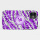 A modern faux glitter design featuring stars scattered over a stylised "sequin look" zebra stripe pattern background. Your choice of initial is written in purple and white on a shaded purple background. A customisable design in shades of purple and silver grey for you to personalise with your own text, pictures and ideas. Please note this is a digital art image and is printed on a flexible plastic background, it does not shine or contain real glitter or sequins.