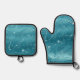 Glitzy Aqua Blue Turquoise Marble Oven Mitt & Pot Holder Set