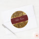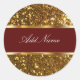 Glitzy monogram stickers with stylish simulated gold glitter pattern printed on the label and maroon coloured monogram emblem you can personalise with any name, initials, or personal message. Best monogram labels for thank yous, parties, gift labels, or name tags.
