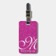pink glitter custom luggage tag with leather strap: large script monogram and name