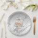 Glitzy Silver White Cupcake Bow Birthday Paper Plate