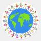 Cute cartoon illustration of little diverse stick boys and girls from all over the world holding hands around a globe. Image available on various gifts and products. You can easily customise and change the background colour and add text if you prefer.