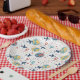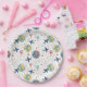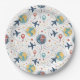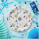 Vibrant seamless pattern paper plate featuring aeroplanes, globes, flight paths, stars, and travel-inspired icons in a playful aviation style. Ideal for travelers, aviation enthusiasts, frequent flyers, and anyone who loves global adventure aesthetics.