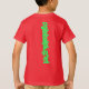 The t-shirt feels and looks great quality, a good thick cotton. It will be a little big for my son, but that means he will be able to wear it and not out grow it too soon. The print was as described on the order when personalised. True size, shape and colour T-shirt- thanks.