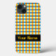 Simple and stylish design featuring a checks in blue, yellow, dark orange and white. A customisable design for you to personalise with your own text, images and ideas. An original digital art image created by QuirkyChic.