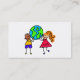 Cute cartoon whimsical illustration of a happy little stick figure boy and girl holding the world together. Easily customise and choose your own background colour or add text. Image available on various gifts and products.