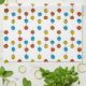 Abstract design with a mid century retro touch featuring spheres in outlined in black and ovals in bright blue, golden yellow and burnt orange on a white background. A customisable design for you to personalise with your own text, images and ideas. An original digital art image created by Jess Perry at QuirkyChic Retro.