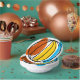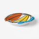 Abstract design with a mid century retro touch featuring a sphere in outlined in black and ovals in bright blue, golden yellow and burnt orange on a white background. A customisable design for you to personalise with your own text, images and ideas. An original digital art image created by Jess Perry at QuirkyChic Retro.