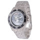 Has heft and feel of expensive stainless steel quartz watches. Good band with safety catch. I removed links, which is easy because engraved arrows show direction to push the linking pins. As always by this seller, the image (a railroad logo) is a perfect reproduction of my emailed image, and is precisely spaced and aligned.