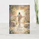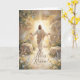 Celebrate the wonder of Easter with this breathtaking card featuring a radiant painting of the risen Savior standing before the open tomb, arms extended in triumph and grace. Light pours from behind Him, symbolizing the victory of life over death and the boundless love that conquered every darkness. Inside, a message of forgiveness and renewal invites hearts to rejoice in the hope and peace found in His resurrection. This card is a beautiful way to share the true meaning of Easter with those you love.