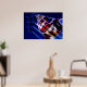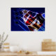 The US Navy's Blue Angels streak past over an American Flag. Powerful colours in this patriotic image in celebration of the republic.