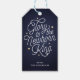 This modern design features hand drawn gold stars on a dark navy blue night sky. The back includes a hand drawn coordinating star pattern.