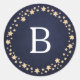 This holiday design features hand drawn gold stars against a navy blue night sky with a custom monogram letter.