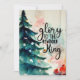 Inspirational flat Christmas card depicts a beautiful watercolor design with a simple decorated pine tree and abstract background. It features the first verse from the beloved Carol, "Hark the herald angels sing, Glory to the newborn King!"