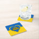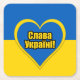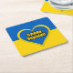 Square paper coaster with the flag of Ukraine, heart in the Ukrainian colors, and text saying "Glory to Ukraine" in Ukrainian