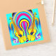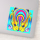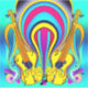 A brilliant canvas of aqua, blues, and pink has been created using guitars as the focus. Combining the bright colors and the guitars gives off a sense of adventure.