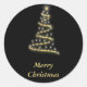 Glossy gold Christmas tree black Classic Round Sticker