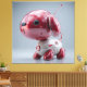 A bright cherry-red robotic puppy with a shiny white body, oversized floppy ear, and a playful antenna perched on its head sits proudly against a clean gradient background. Its smooth reflective surfaces, big round eyes, and cute mechanical details capture a perfect blend of retro-futuristic charm and adorable toy-like appeal. This cheerful digital artwork brings instant fun and sci-fi whimsy to posters, canvas prints, phone cases, mugs, stickers, throw pillows, and décor that tech lovers and robot pet fans will adore.