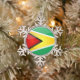 Glossy Round Guyanese Flag Snowflake Pewter Christmas Ornament