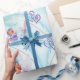 Glossy Wrapping Paper, Angel Blue Feathers Hearts Paper