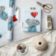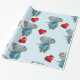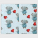 Glossy Wrapping Paper Blue Elephant Red Hearts