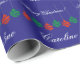 Glossy wrappingpaper with personalised name. Red and green coloured Merry Christmas lights wrapping paper for men women and kids. Classy Holiday design with colourful hanging light bulb balls and custom seasons greeting message. Personalizable with name of adult or child. Fun giftwrap with Xmas decorations. Purple or custom background colour. Elegant typography letters.