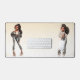 Add runway glam to your workspace with this luxe desk mat. Featuring two full‑body fashion illustrations in sparkling denim and rose‑gold sneakers against a champagne starburst background, it’s stylish, protective, and perfect for a Glow Getter vibe.