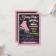 Super fun Glow in the dark Roller Skating birthday party invitations. Features a glowing pink faux sequin roller skate and boarder and fun typography. Hand drawn illustration by McBooboo. These do not glow in the dark.