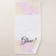 Glow design towel set. Soft pastel sparkles in a light rainbow. Glow can be customised into your text