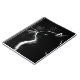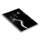 Profile portrait of a black cat's head with blue eye and illumination glow on a black background