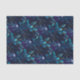 A beautiful tissue paper with a pattern of glowing leaves in blue.