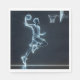 Glowing neon basketball player with a ball ready to dunk the ball in the net.