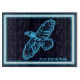 A simple, glowing, blue-and-white line image of a Raven (Corvus corax) on a starry background image. Add your own text.