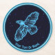 A simple, glowing, blue-and-white line image of a Raven (Corvus corax) on a starry background image. Add your own text.