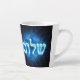 Glowing Blue Shalom On Etched Star of David Latte Mug