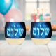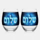 Glowing Blue Shalom On Etched Star of David Stemless Wine Glass