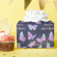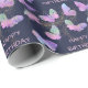 These pastel patterned butterflies almost seem to glow on this pretty birthday gift wrap paper. The butterflies are in tones of pink, aqua, violet and green, and are placed on a dark blue background to make the images really pop. Gold faux glitter gives extra sparkle to the design. Your custom text is repeated in pink. Pretty for any birthday celebration.